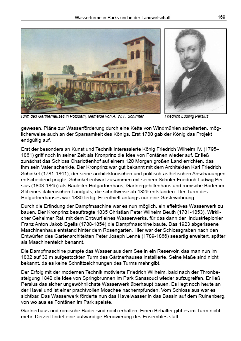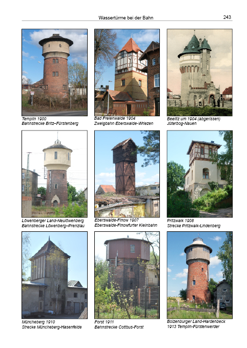 erschloss das Land, wobei Dampflokomotiven regelmäßige Wasserstationen und -türme benötigten. Das Buch dokumentiert 275 erhaltene und verschwundene Wassertürme, beleuchtet frühe Anlagen zur Versorgung königlicher Parkanlagen und stellt wichtige Ingenieure des Behälterbaus vor.